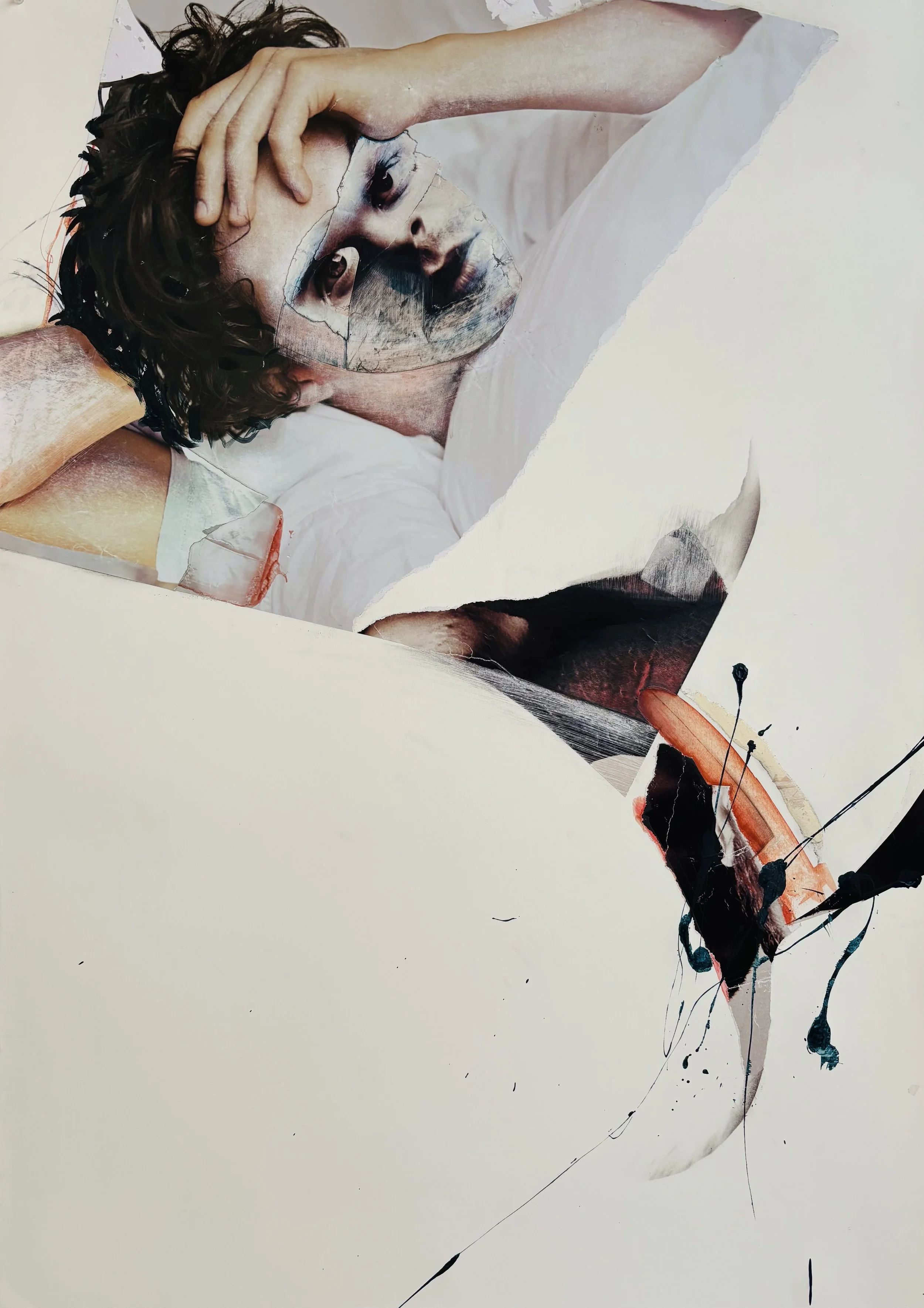 "Duvet," collage, mixed media, 47 x 34", 2026